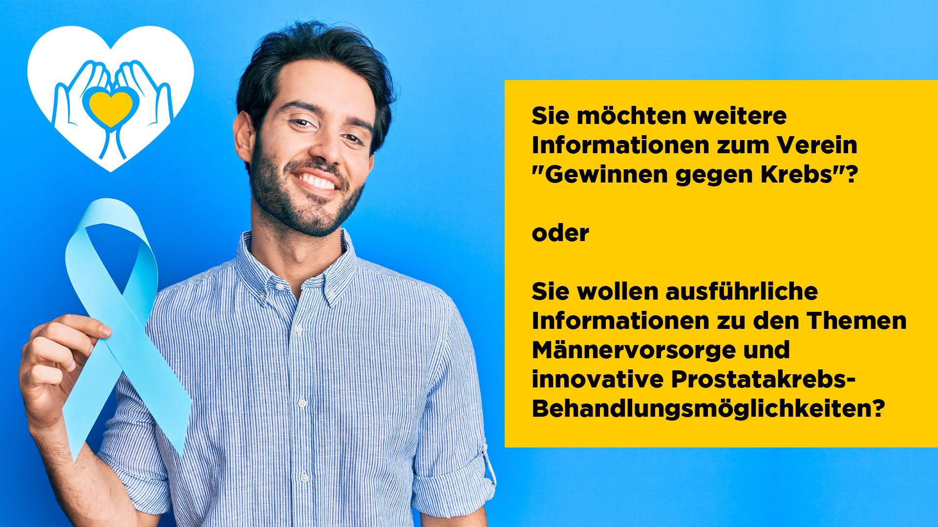 Gemeinsam mit weiteren Mitstreitern haben wir den Verein „Gewinnen gegen Krebs“ gegründet. Zielsetzung für uns ist in erster Linie Öffentlichkeitsarbeit zu betreiben, um Männer und vor allem junge Männer zur Prostatakrebsvorsorge zu bewegen.